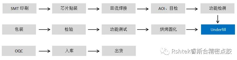 添加底部填充劑的步驟通常會被安排在電路板組裝完成,并且完全通過電性測試以確定板子的功能沒有問題后才會執(zhí)行,因?yàn)閳?zhí)行了underfill 之后的晶片就很難再對其進(jìn)行修理(repair)或重工(rework)的動作。