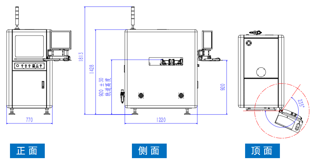 睿斯合在線全自動點膠機外形尺寸:770×1220×1813(W*D*H)