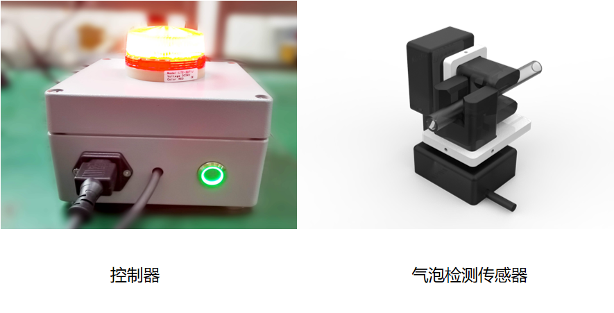 原理:氣泡檢測傳感器是根據(jù)超聲波在不同介質(zhì)中的不同傳播特性,通過特殊的電路分析處理,以智能辨別出被監(jiān)測流動(dòng)管道中的介質(zhì)狀況。