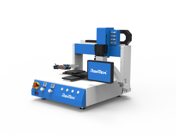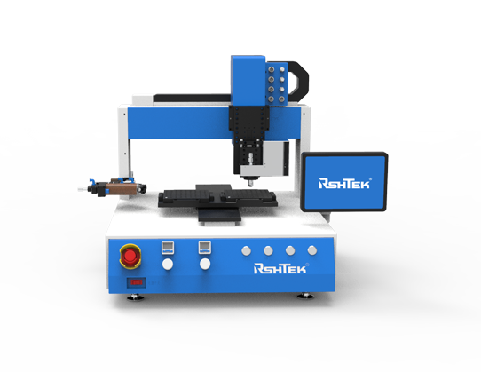 DR-400X桌面機,可以實現產品吸附及放置,并實現旋轉側邊點膠。精巧的桌面機點膠設備,睿斯合三軸桌面點膠機DR系列,采用進口品牌伺服電機、絲桿,保證了產品的精度和耐用性。控制系統全內置設計+懸臂式顯示器,使得整機緊湊,更方便收納。