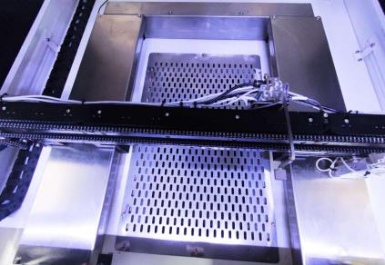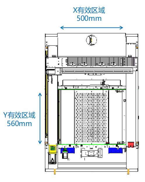 | X軸有效區(qū)域 500mm;Y軸有效區(qū)域560mm; 軌道調(diào)幅采用馬達驅(qū)動,直線滑軌與絲桿傳動,并配有限位開關(guān),安全、快捷、輕巧。軌道可電動調(diào)節(jié)寬度范圍60mm~600mm; 絲桿使用不銹鋼防護罩,防止其被噴涂。 ![]() | ![]() |